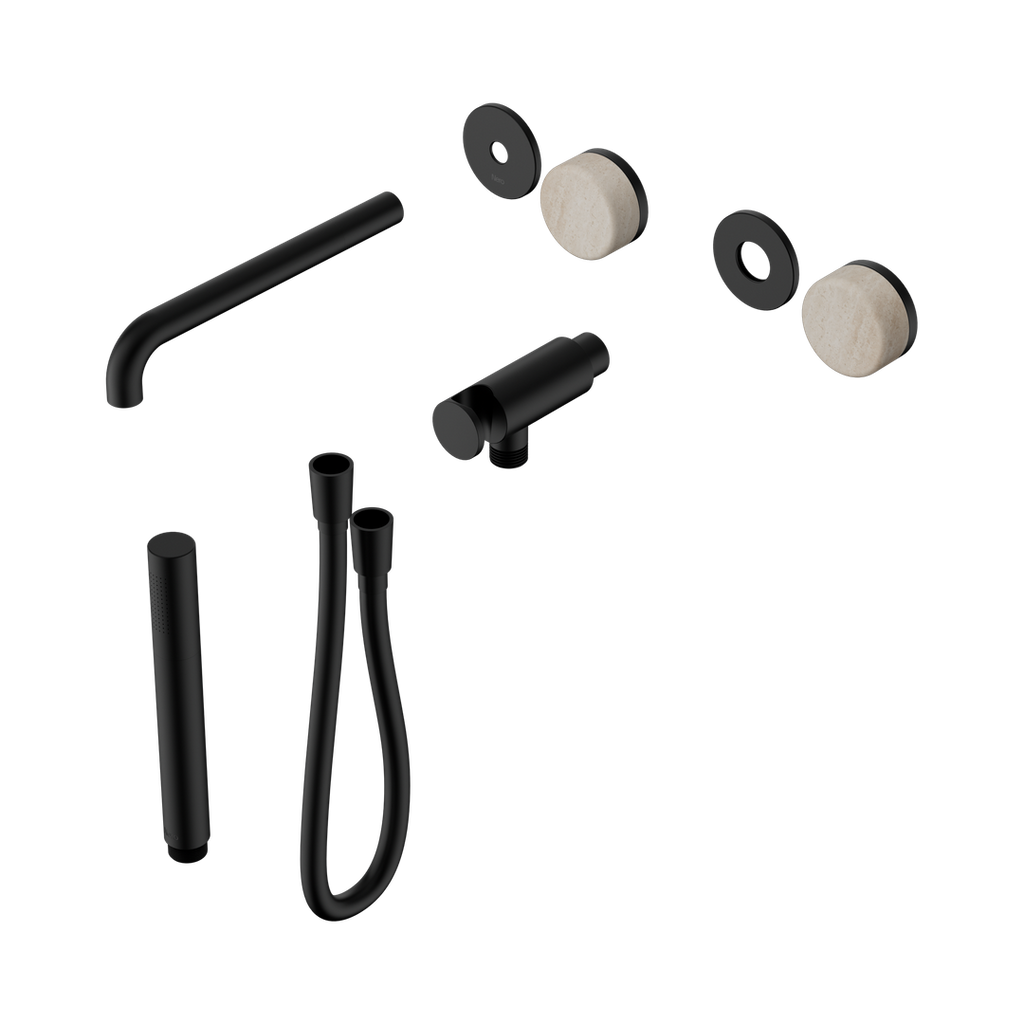 Nero Serenity Progressive Shower System With Spout Rome Travertine Handle & Slim Shower Trim Kit Only Matte Black