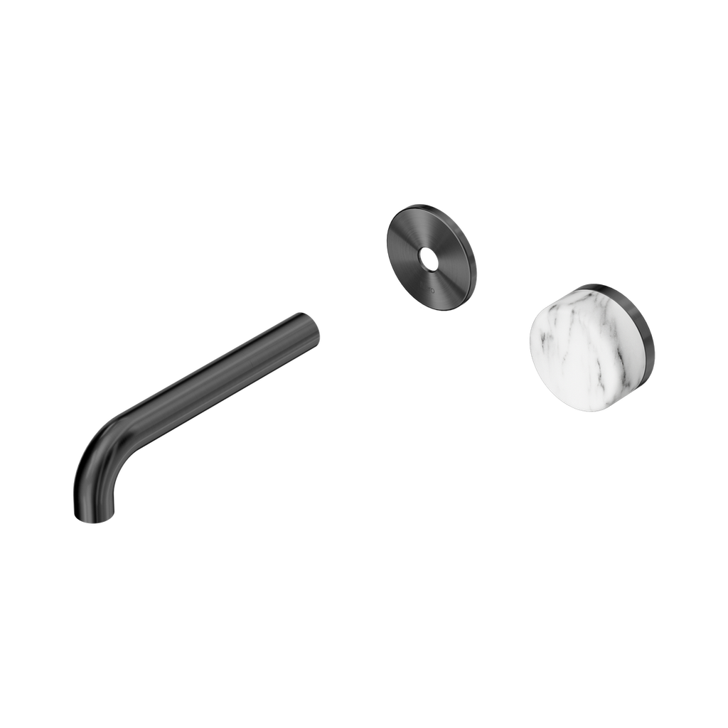 Nero Serenity Progressive Wall Basin Mixer 160Mm Spout With Arabescato Corchia Handle Trim Kit Only Gun Metal