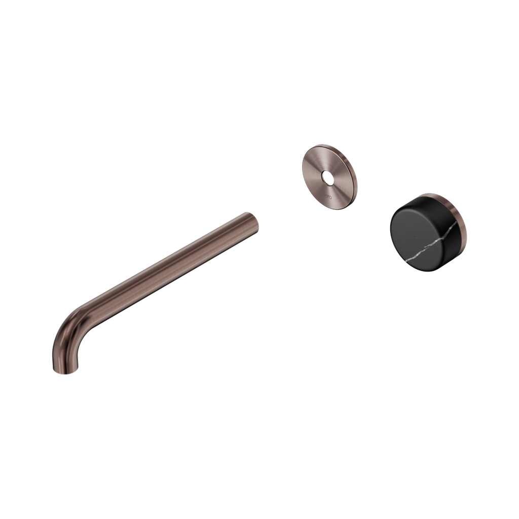 Nero Serenity Progressive Wall Basin Mixer 220Mm Spout With Marquina Black Handle Trim Kit Only Brushed Bronze