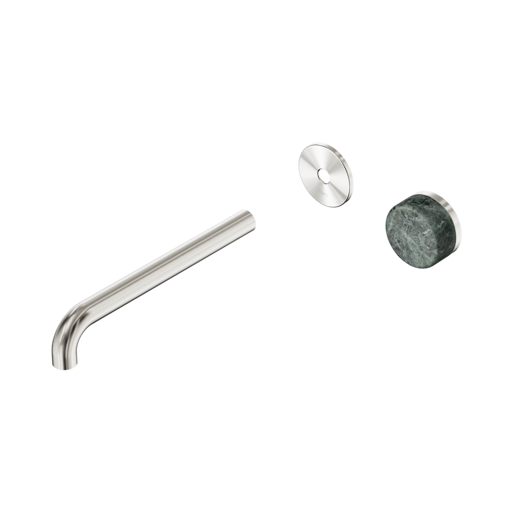 Nero Serenity Progressive Wall Basin Mixer 220Mm Spout With Verde Alpi Handle Trim Kit Only Brushed Nickel