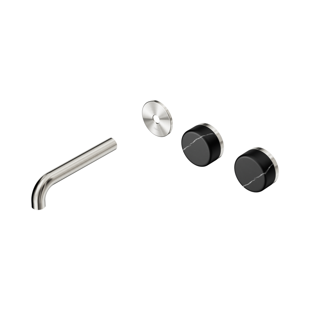 Nero Serenity Wall Basin Set 160Mm Offset Spout Marquina Black Handle Trim Kit Brushed Nickel