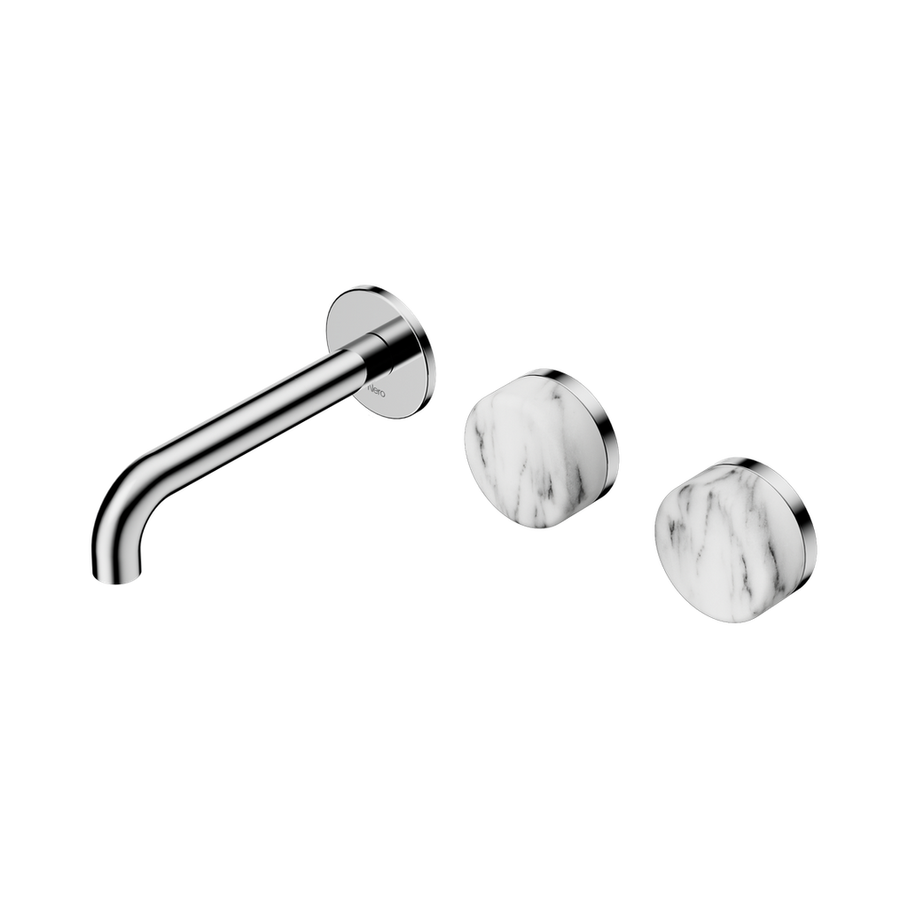 Nero Serenity Wall Basin Set 160Mm Offset Spout With Arabescato Corchia Handle Chrome