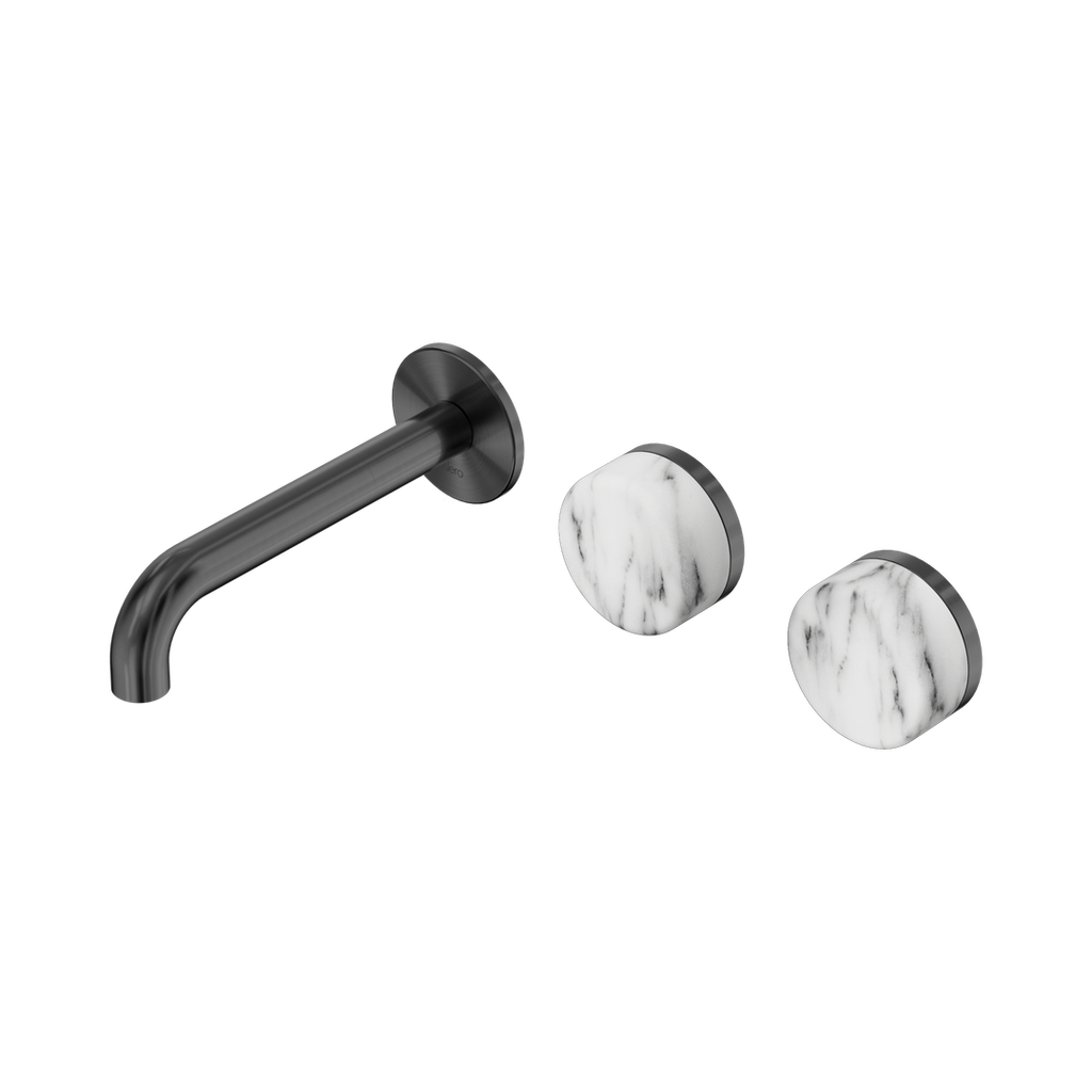 Nero Serenity Wall Basin Set 160Mm Offset Spout With Arabescato Corchia Handle Gun Metal