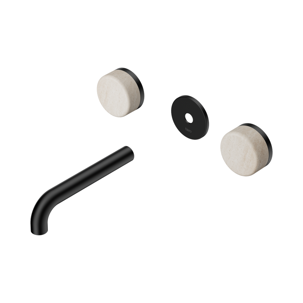 Nero Serenity Wall Basin Set 160Mm Spout With Rome Travertine Handle Trim Kit Only Matte Black