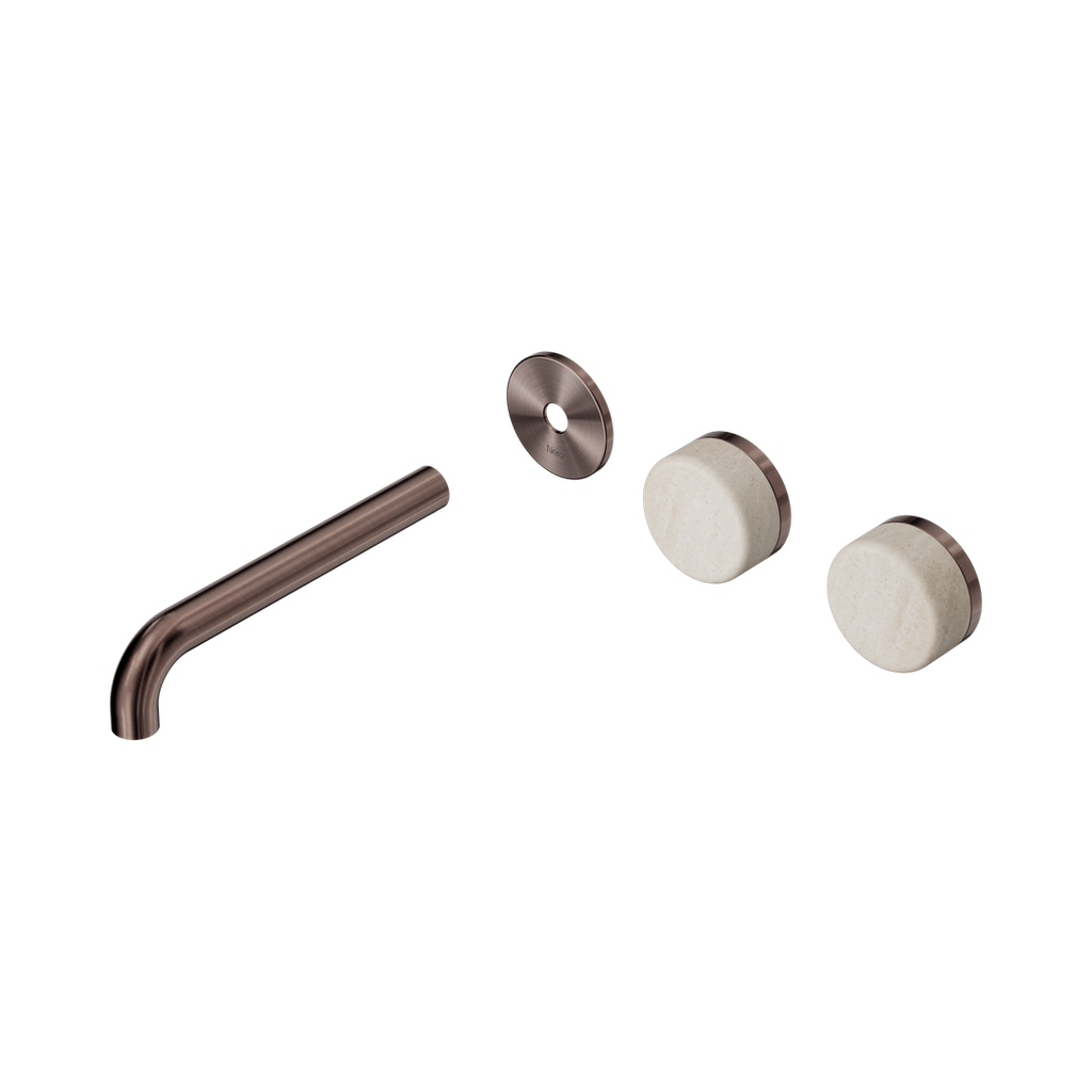 Nero Serenity Wall Basin Set 185Mm Offset Spout Rome Travertine Handle Trim Kit Brushed Bronze