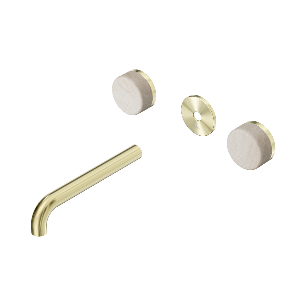 Nero Serenity Wall Basin Set 185Mm Spout Rome Travertine Handle Trim Kit Only Brushed Gold