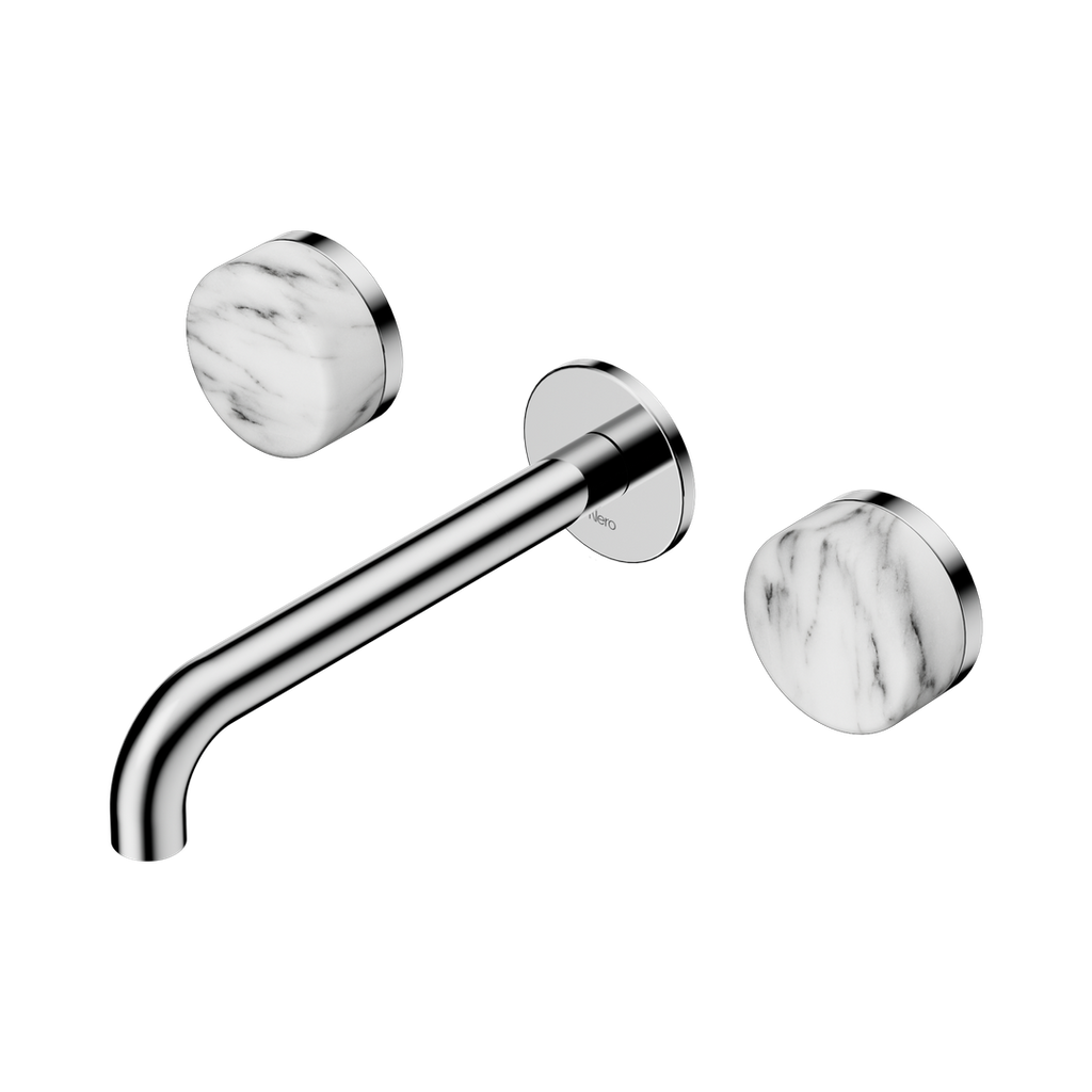 Nero Serenity Wall Basin Set 185Mm Spout With Arabescato Corchia Handle Chrome