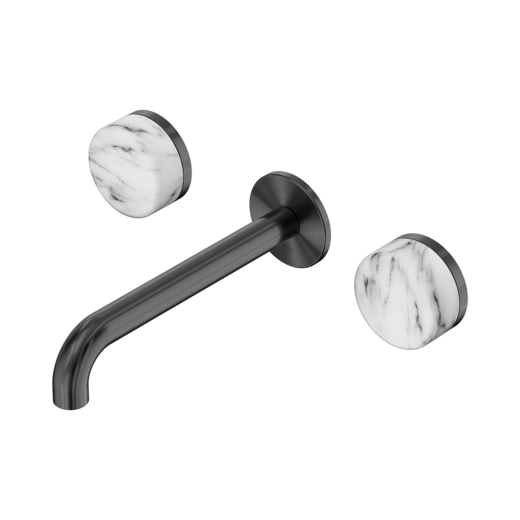 Nero Serenity Wall Basin Set 185Mm Spout With Arabescato Corchia Handle Gun Metal