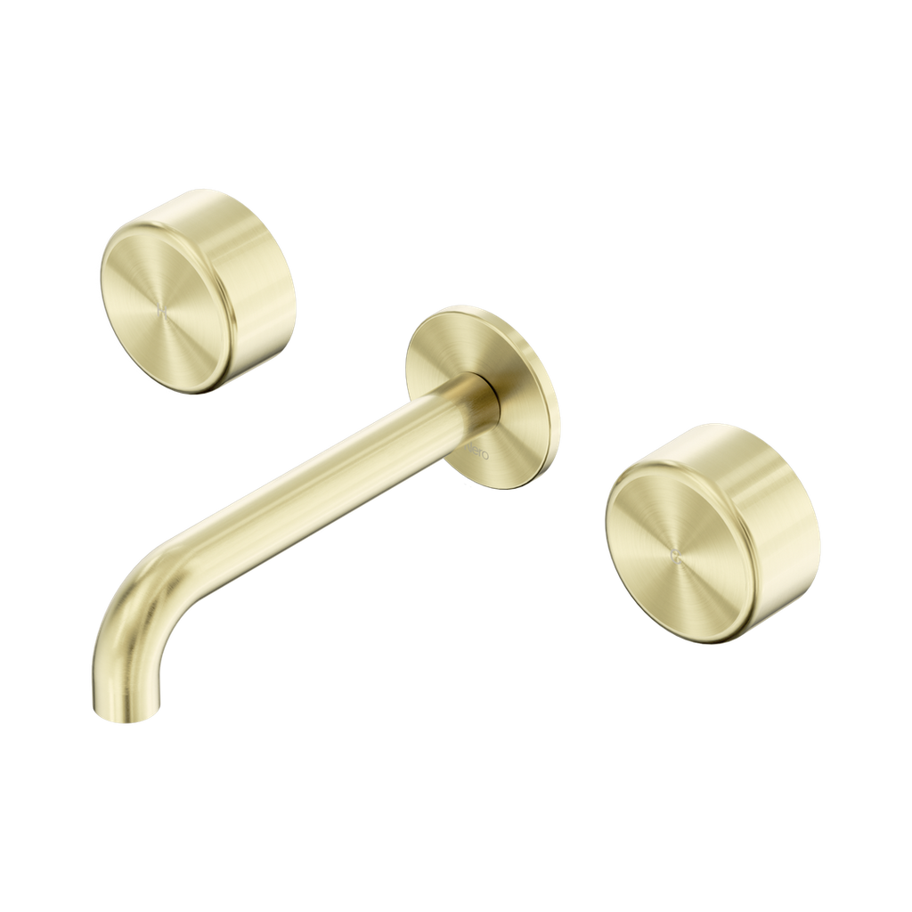 Nero Serenity Wall Basin Set 185Mm Spout With Metal Handle Brushed Gold