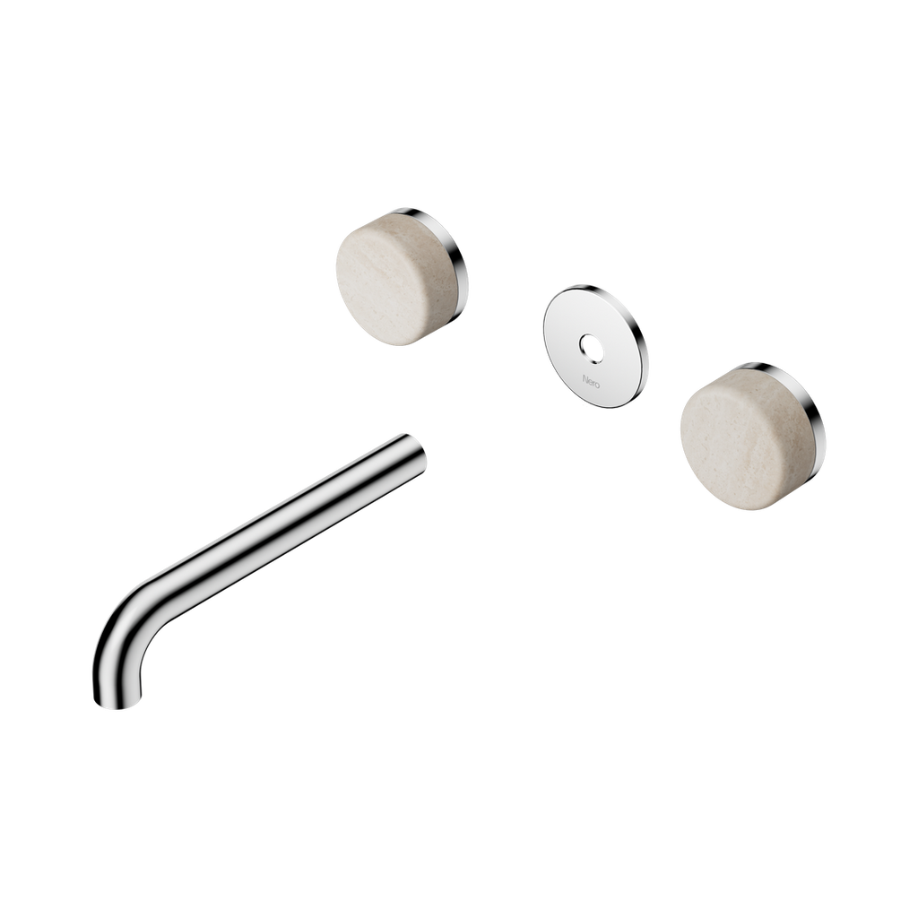 Nero Serenity Wall Basin Set 185Mm Spout With Rome Travertine Handle Trim Kit Only Chrome