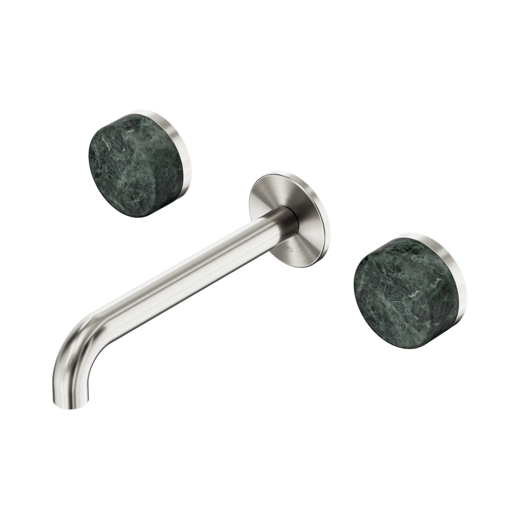 Nero Serenity Wall Basin Set 185Mm Spout With Verde Alpi Handle Brushed Nickel