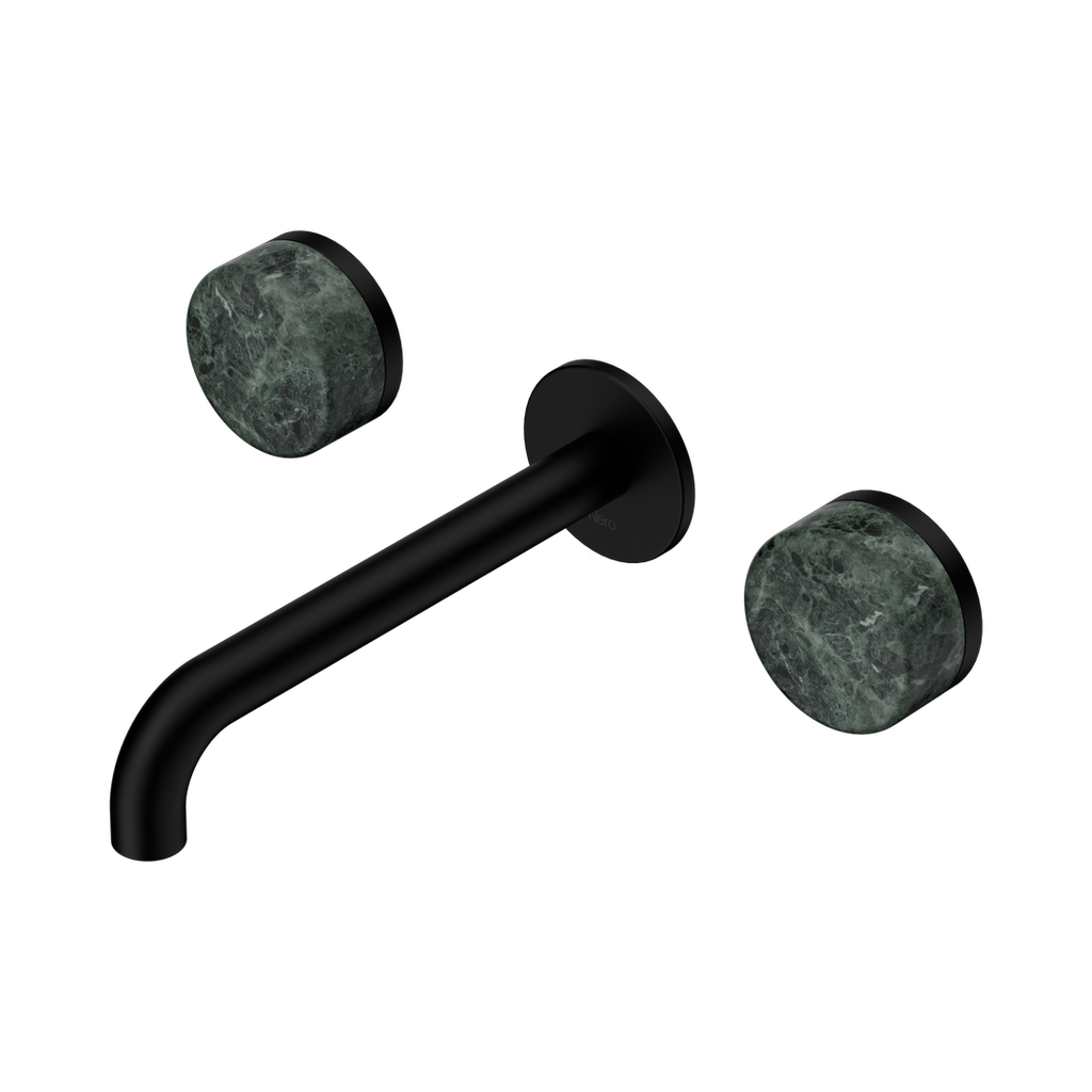 Nero Serenity Wall Basin Set 185Mm Spout With Verde Alpi Handle Matte Black