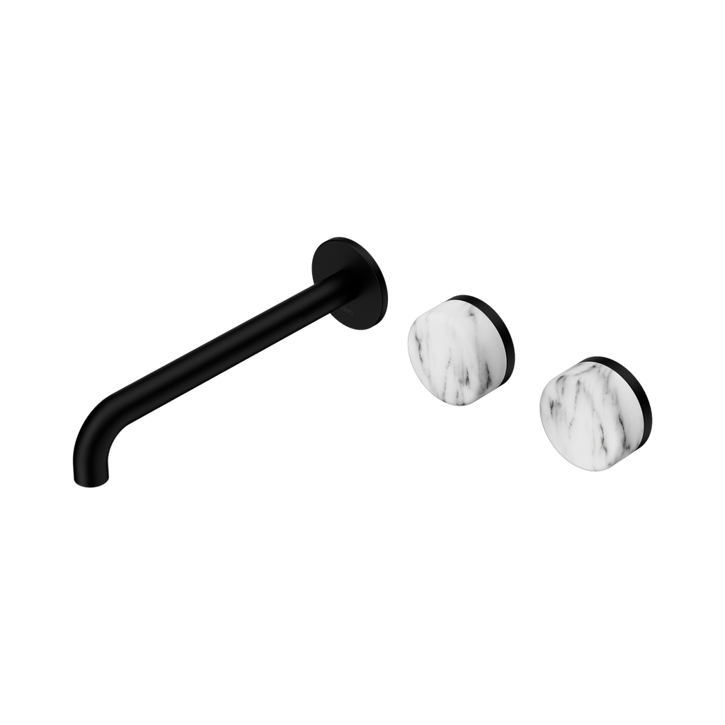 Nero Serenity Wall Basin Set 220Mm Offset Spout With Arabescato Corchia Handle Matte Black