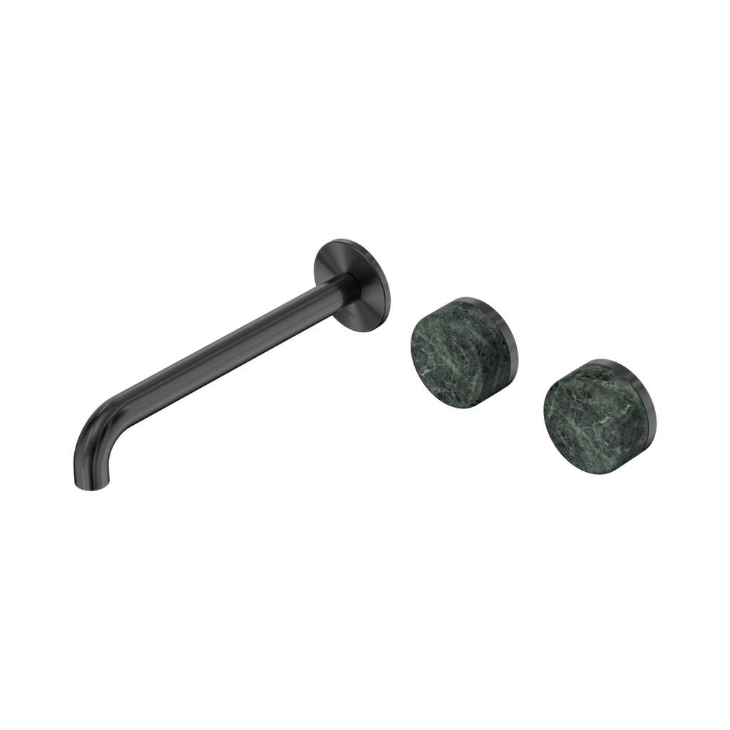Nero Serenity Wall Basin Set 220Mm Offset Spout With Verde Alpi Handle Gun Metal