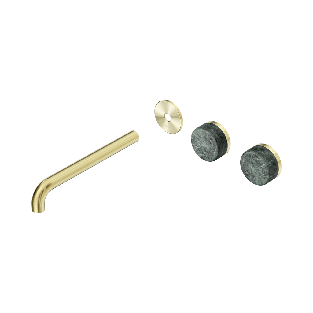 Nero Serenity Wall Basin Set 220Mm Offset Spout With Verde Alpi Handle Trim Kit Only Brushed Gold