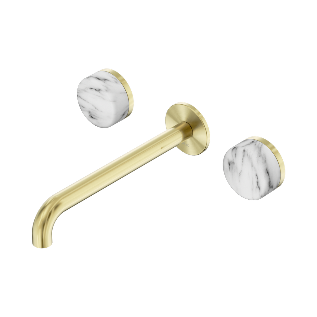 Nero Serenity Wall Basin Set 220Mm Spout With Arabescato Corchia Handle Brushed Gold