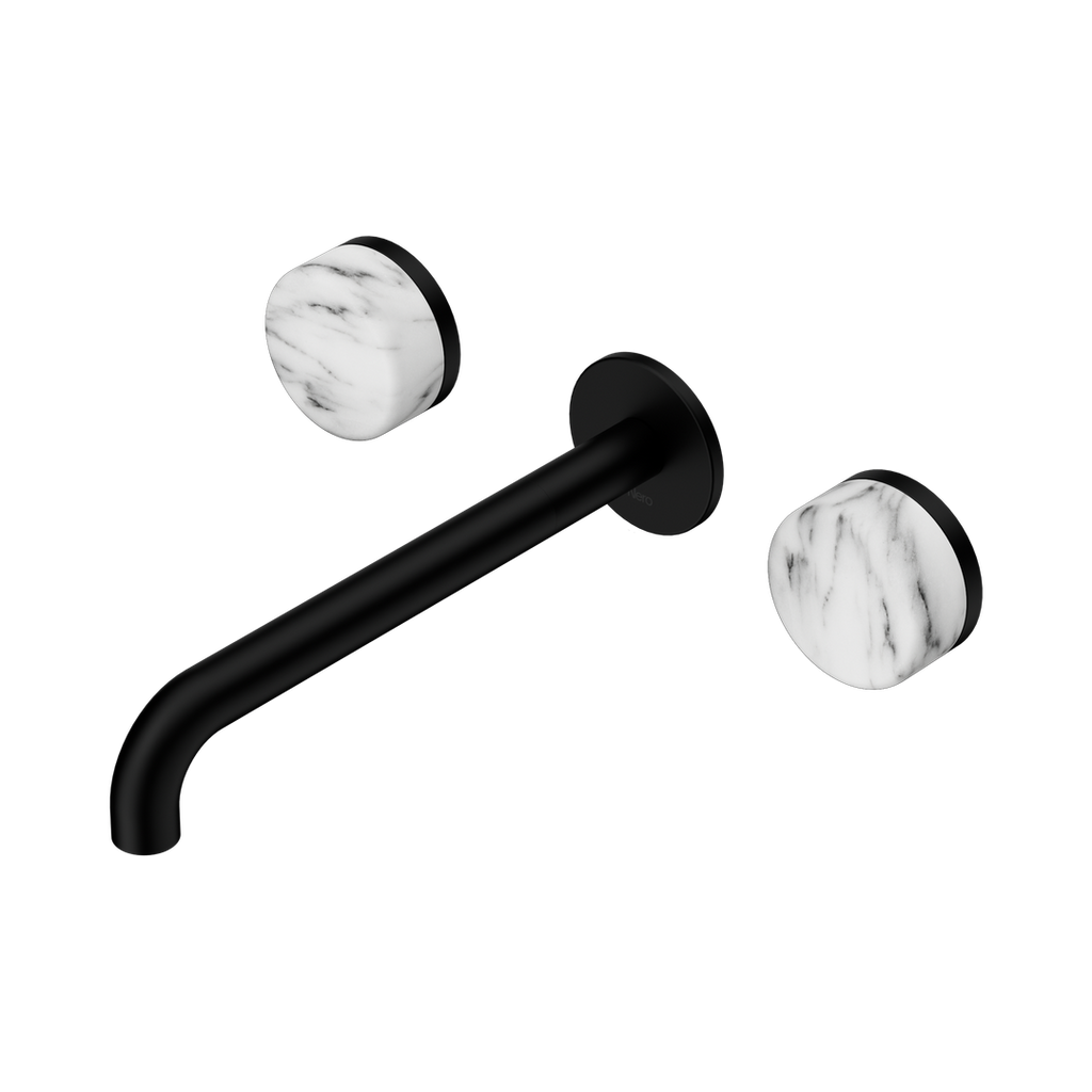 Nero Serenity Wall Basin Set 220Mm Spout With Arabescato Corchia Handle Matte Black