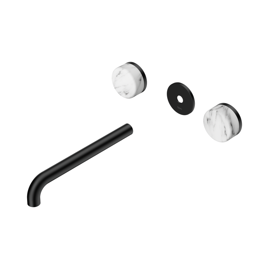 Nero Serenity Wall Basin Set 220Mm Spout With Arabescato Corchia Handle Trim Kit Only Matte Black