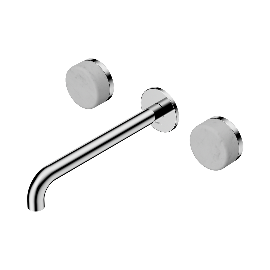 Nero Serenity Wall Basin Set 220Mm Spout With Carrara Handle Chrome