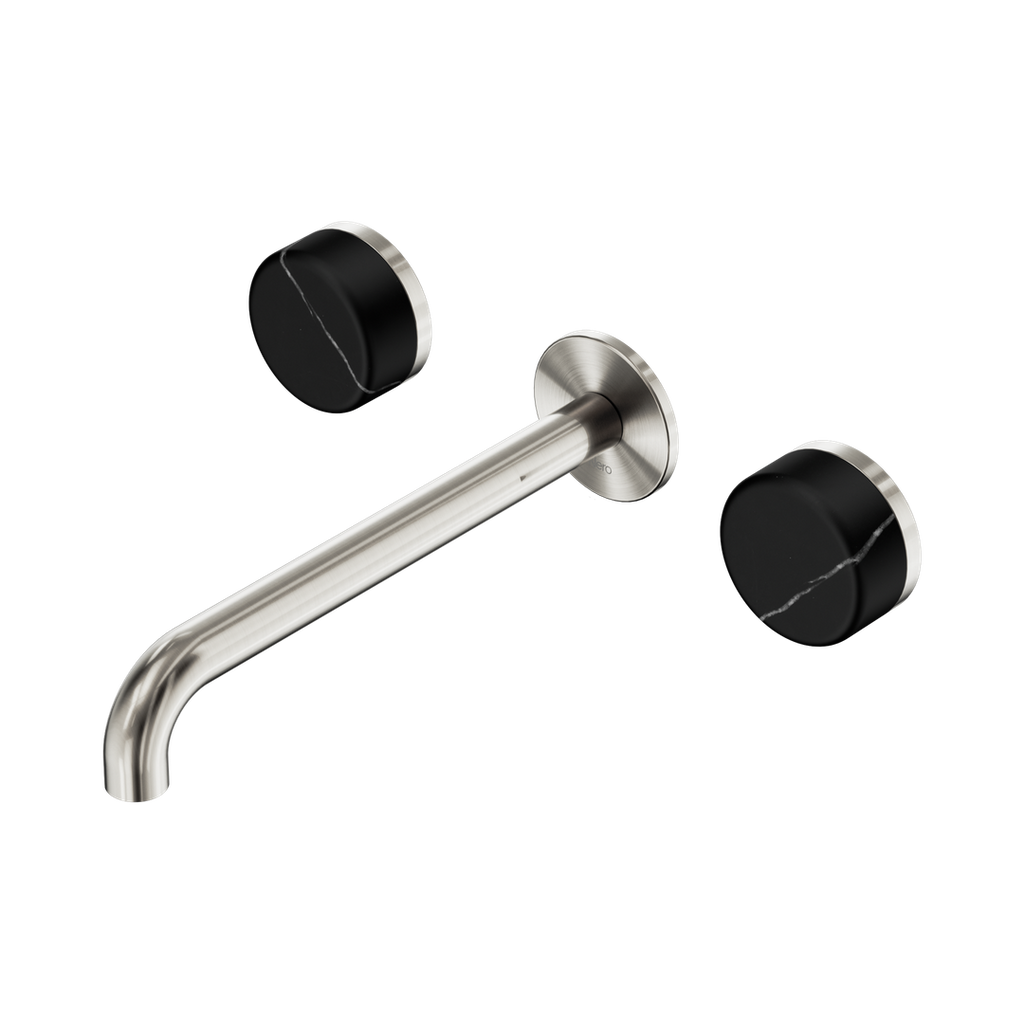 Nero Serenity Wall Basin Set 220Mm Spout With Marquina Black Handle Brushed Nickel
