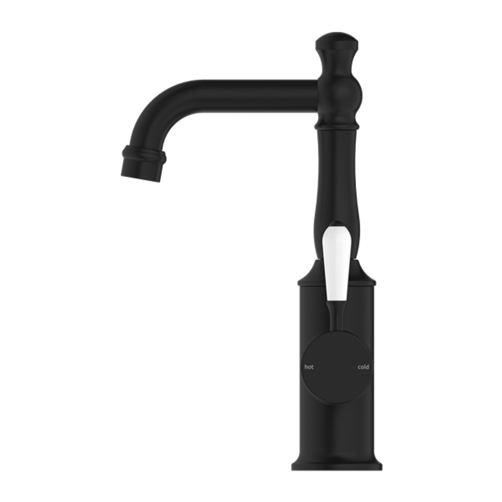 Nero York Basin Mixer White Porcelain Lever Matte Black