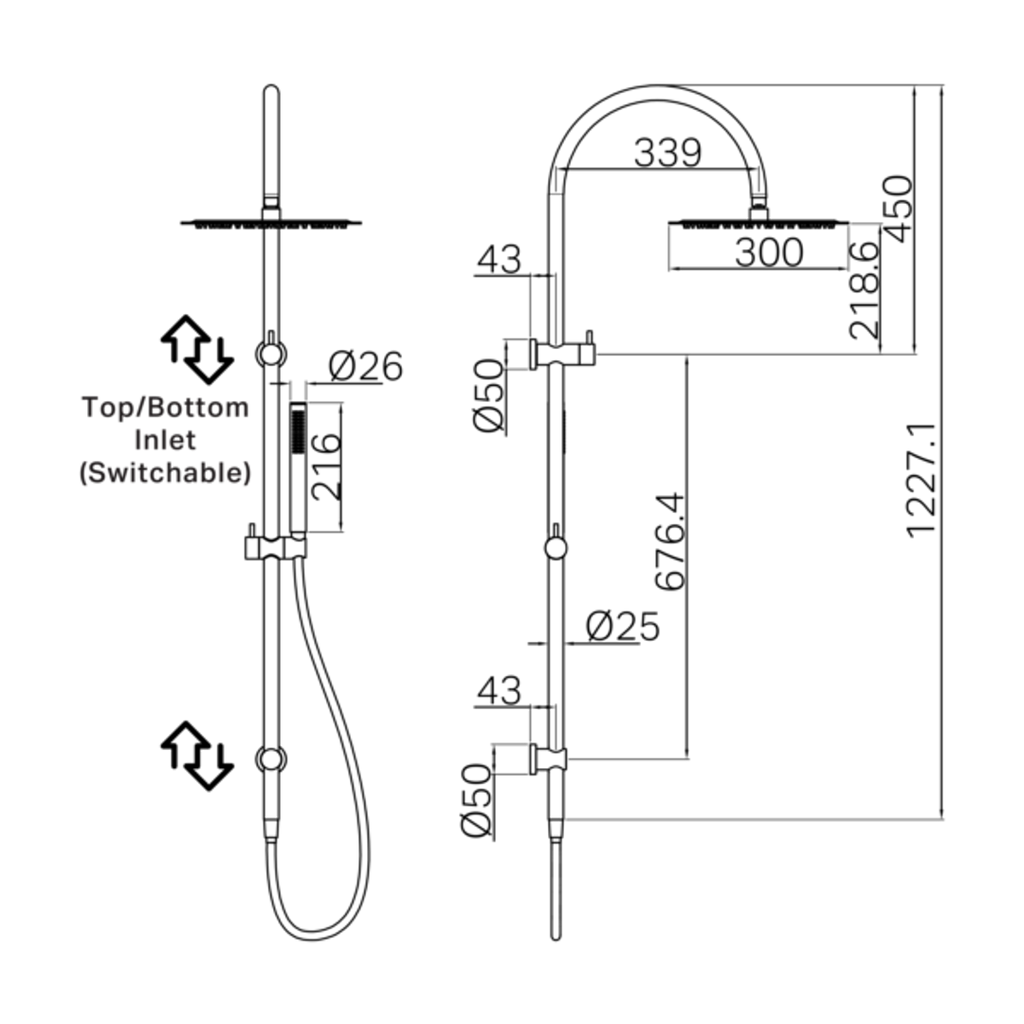 Nero Zen Stainless Steel Twin Shower With Outdoor Shower Hose Brushed Gold
