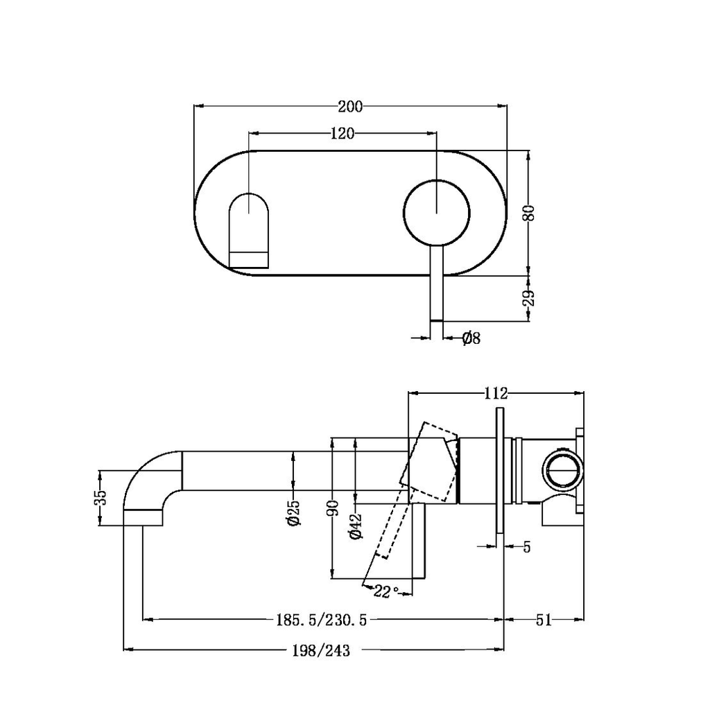 Nero Zen Stainless Steel Wall Basin/Bath Mixer 185Mm Spout Brushed Gold