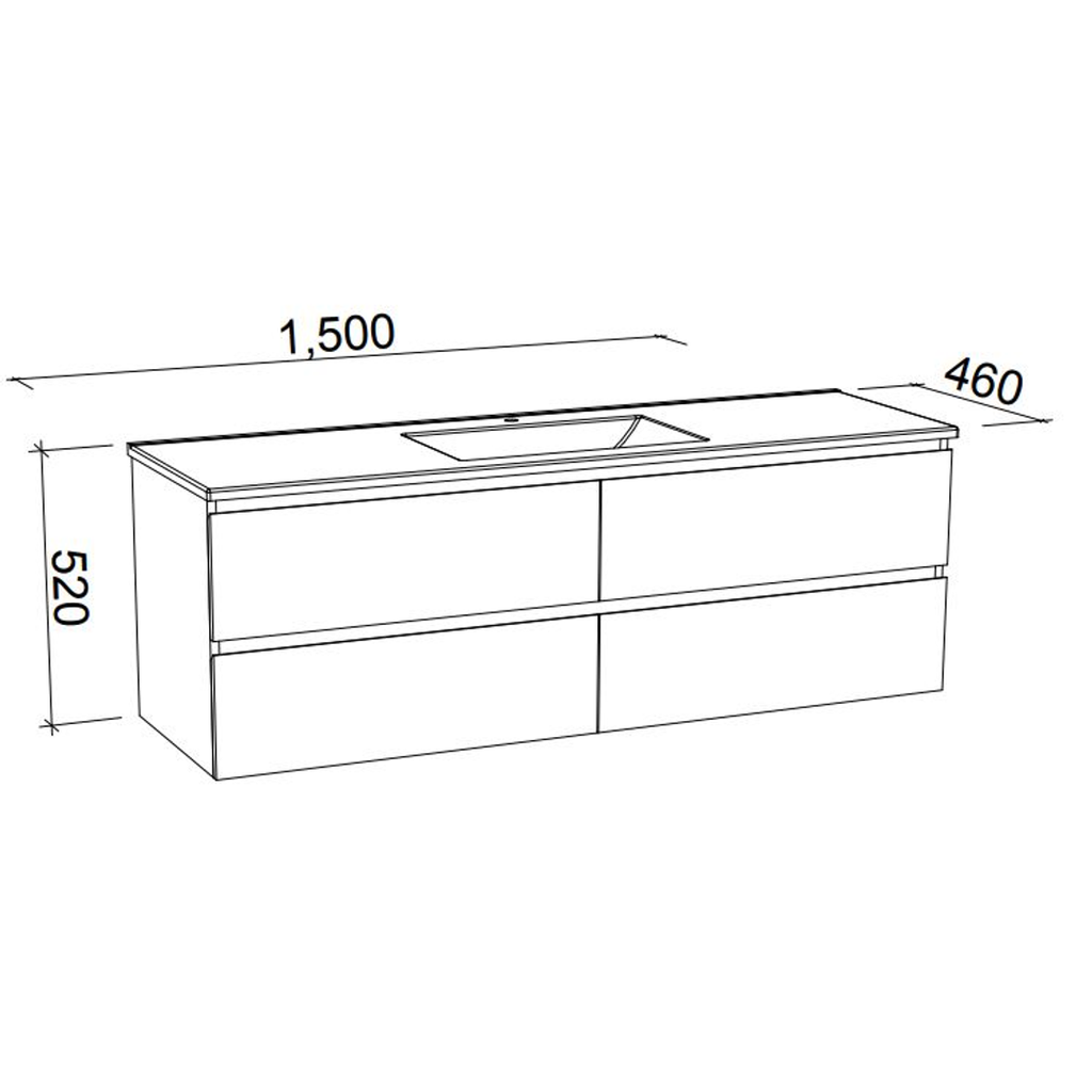 Nevada Plus Wall Hung Vanty 1500mm single bowl Silk Surf Top Above Counter Basin