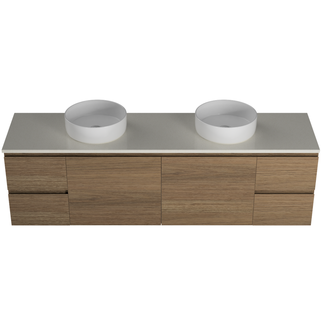 Timberline Nevada Vanty 1800 Dbl Bowl 20mm Silk Surf Top & Ceramc A/Countr Basn Wall Hng