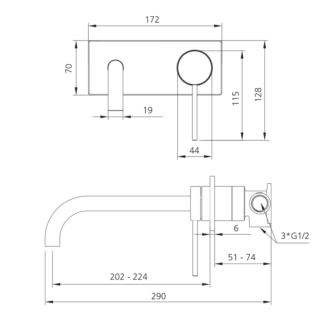 Oliveri VE105505FGM Venice WallMixer Set Curv Gunmetal