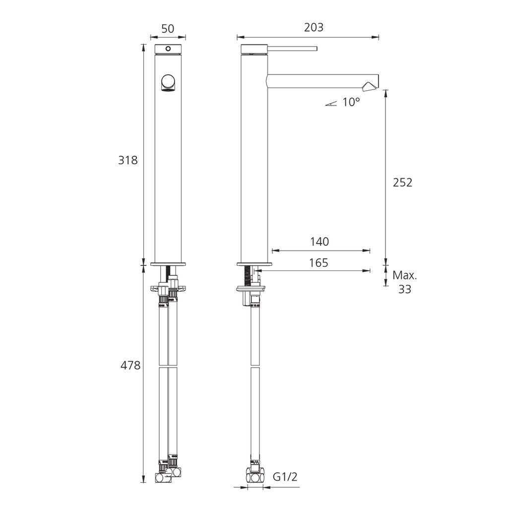 Oliveri VE107506FMB Venice Basin Tower Stra Matte Black