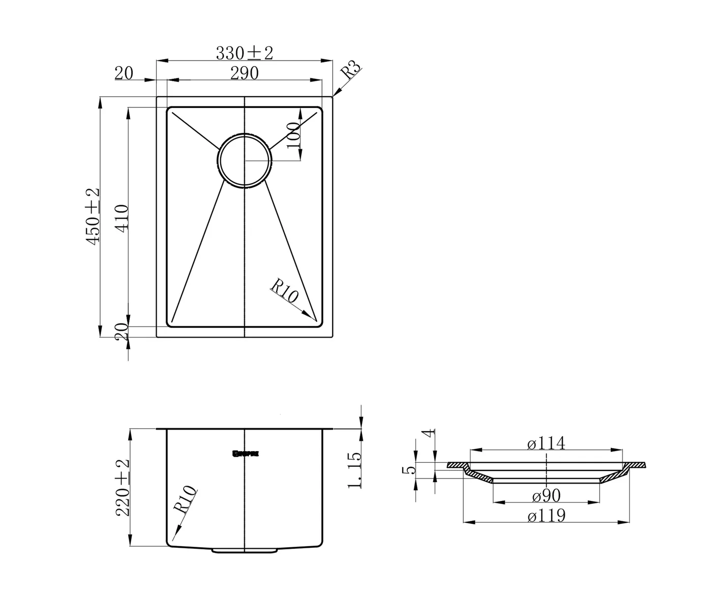 Otti Axon Sink 33S 330X450X220 Argent Gold