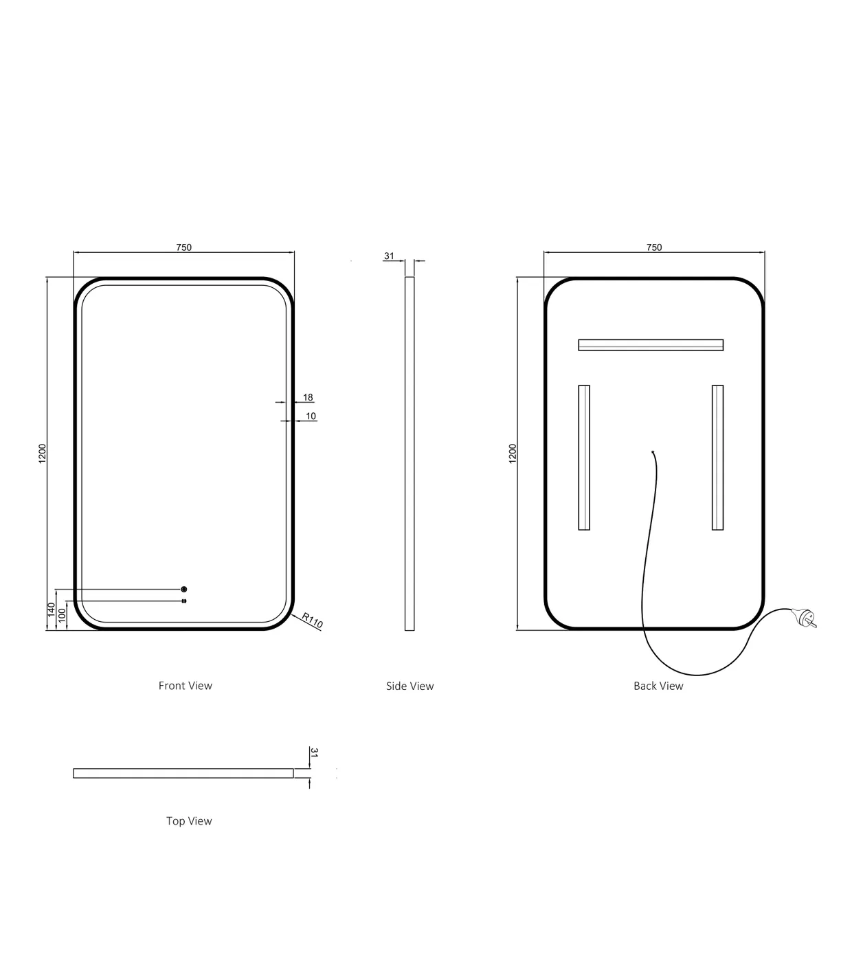 Otti Led Newport 1200X750 White Metal Frame Mirror