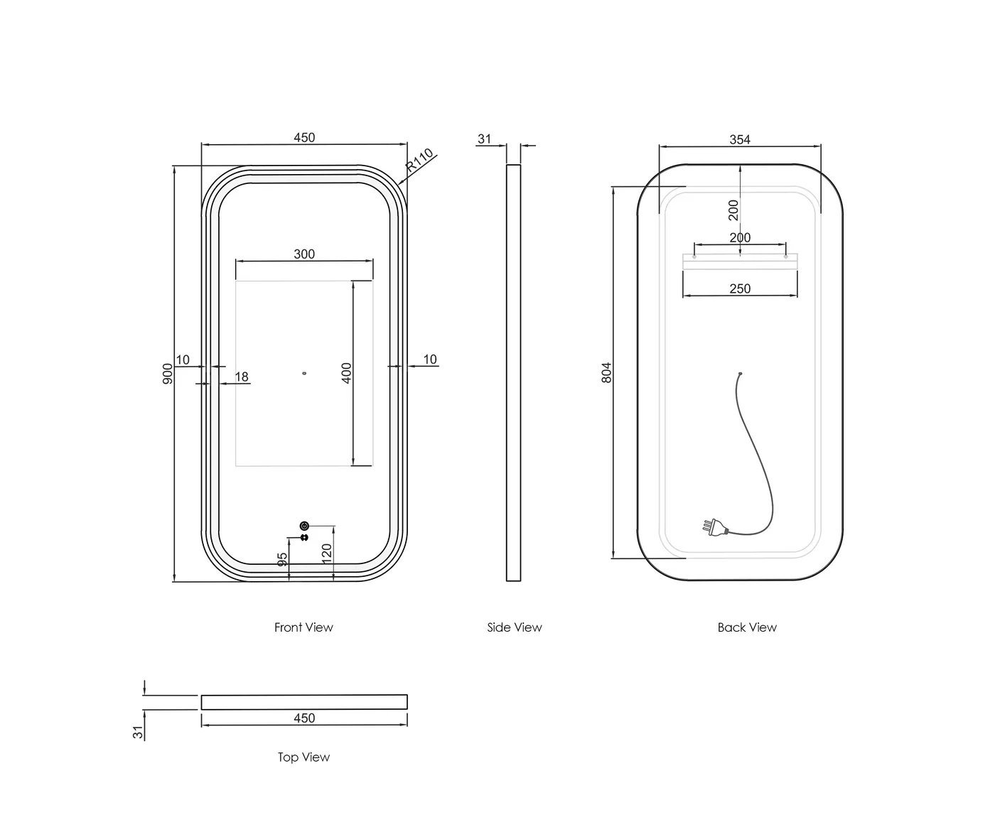 Otti Led Newport 900X450 White Metal Frame Mirror