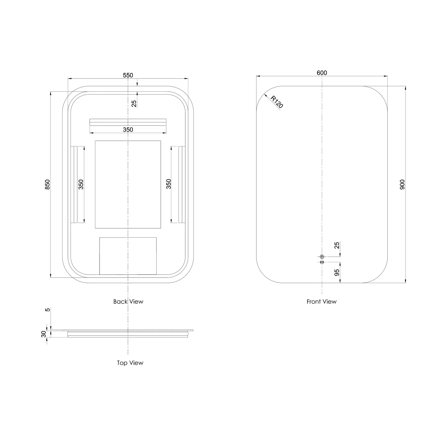 Otti Led Newport 900X600 Frameless Tuffi Mirror Back Lit