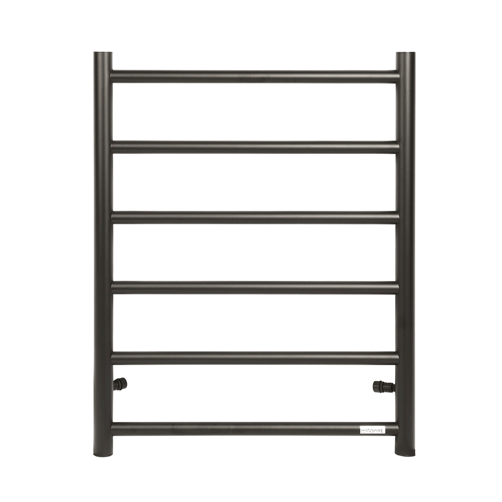 Otti Round Stainless Steel Gun Metal Electric Heated Towel Rack 6 Bars Universal Inlet