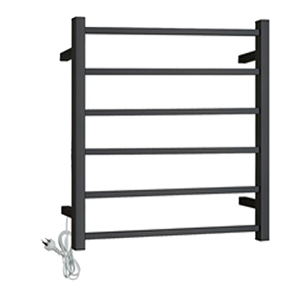 Otti Square Electric Heated Towel Rack 6 Bars Universal Inlet Stainless Steel Black