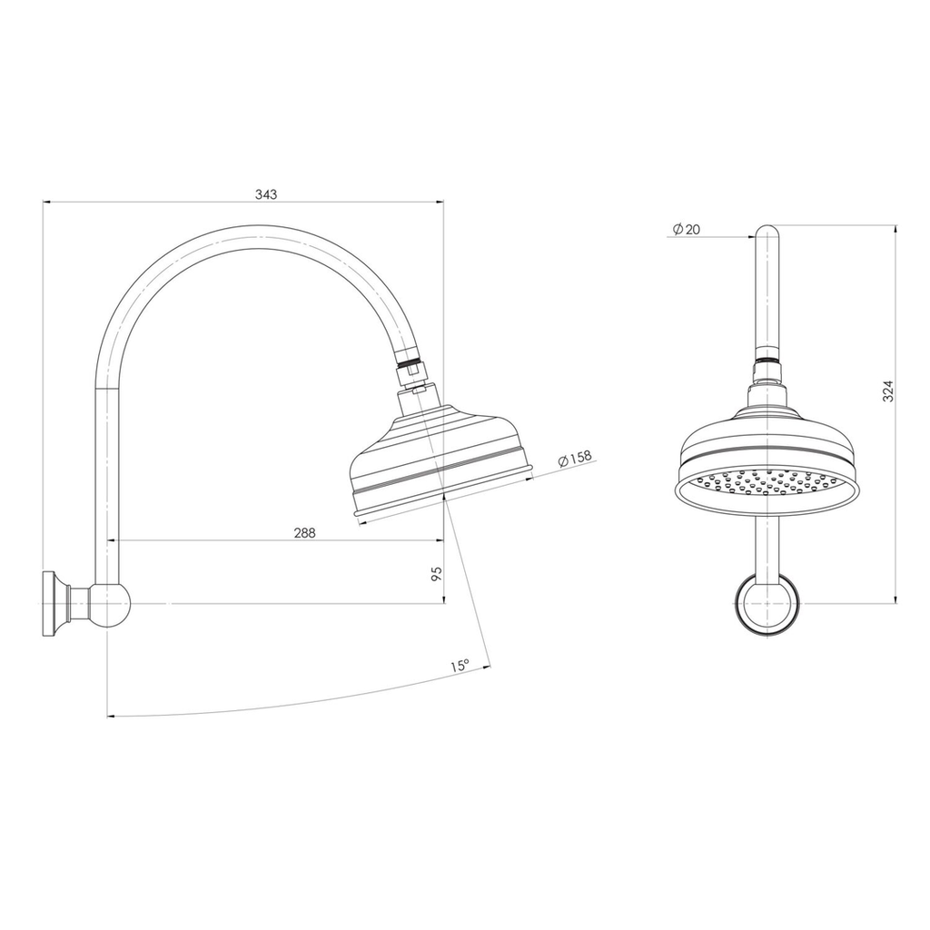 Phoenix Cromford High-Rise Shower Arm & Rose Brushed Gold