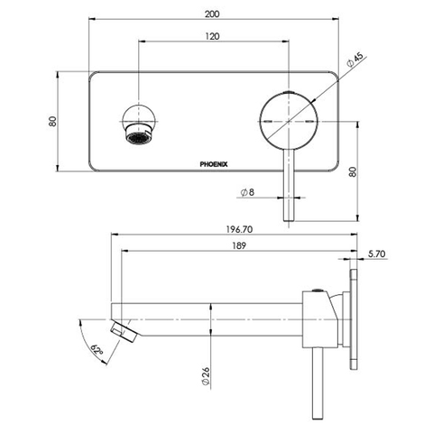 Phoenix Pina Wall Basin/Bath Mixer Set 180mm Brushed Nickel