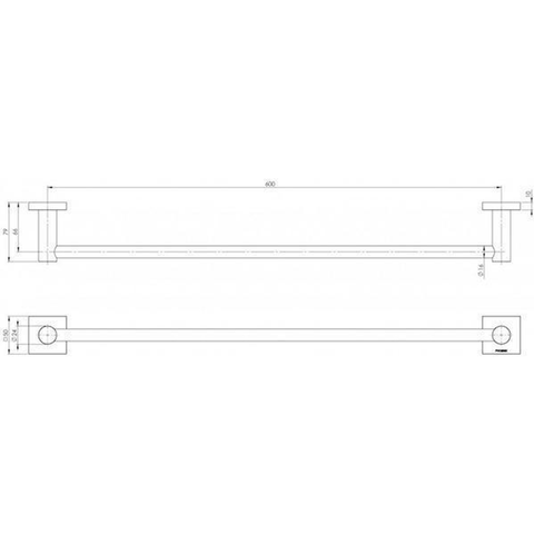 Phoenix RadII Single Towel Rail 800mm Square Plate Brushed Nickel Rs803 Bn