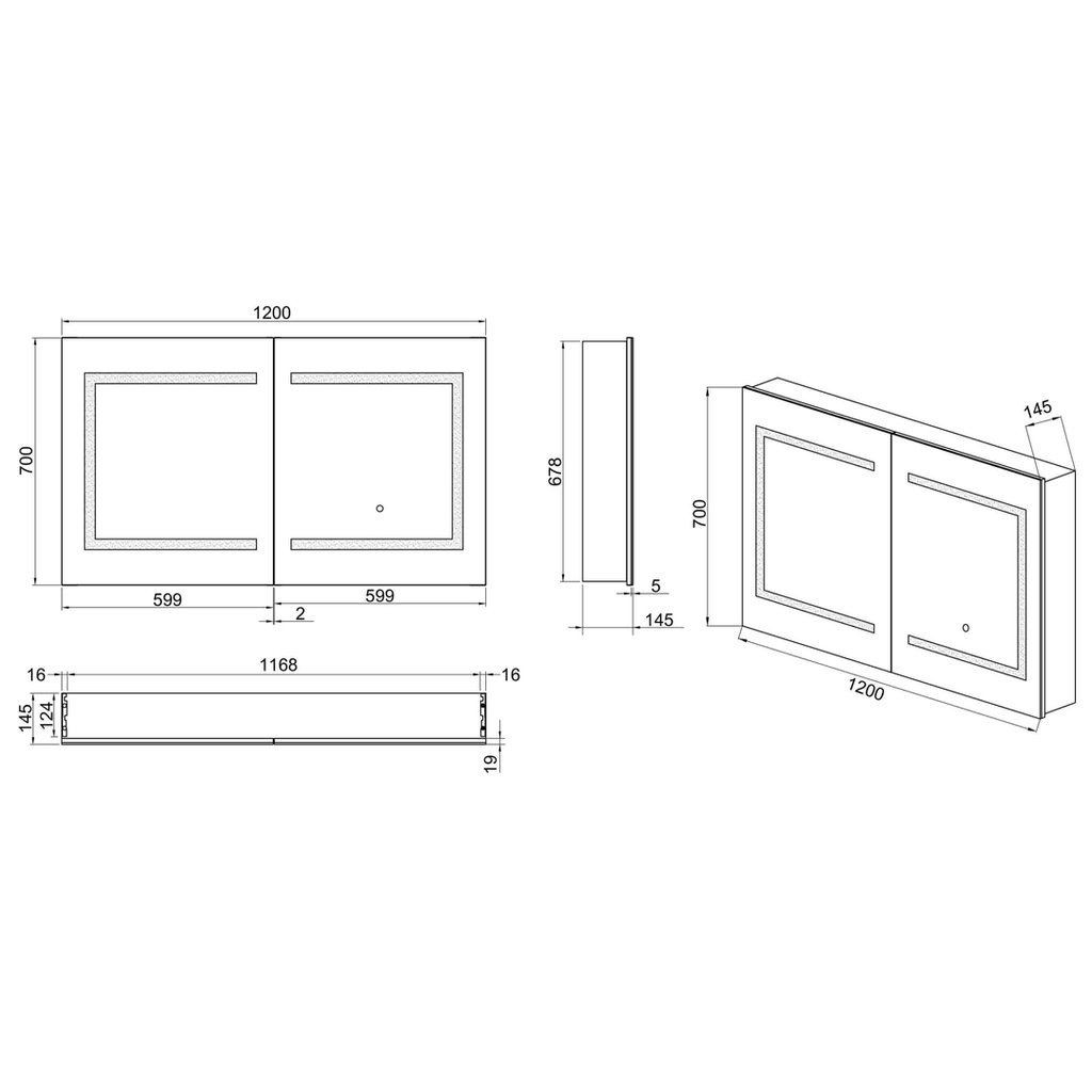 Remer Vera 1200 Led Shaving Cabinet 1200W X 700H X 145D Rscve120