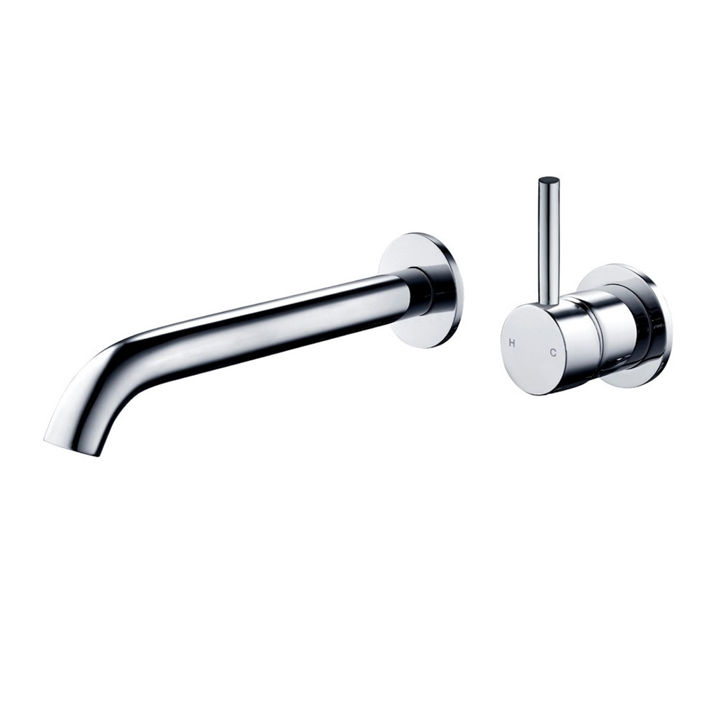 Streamline Axus Pin Wall Mount Basin/Bath Mixer 2 Plate 220 Spout Lever Up Brushed Iron *Ext Only*