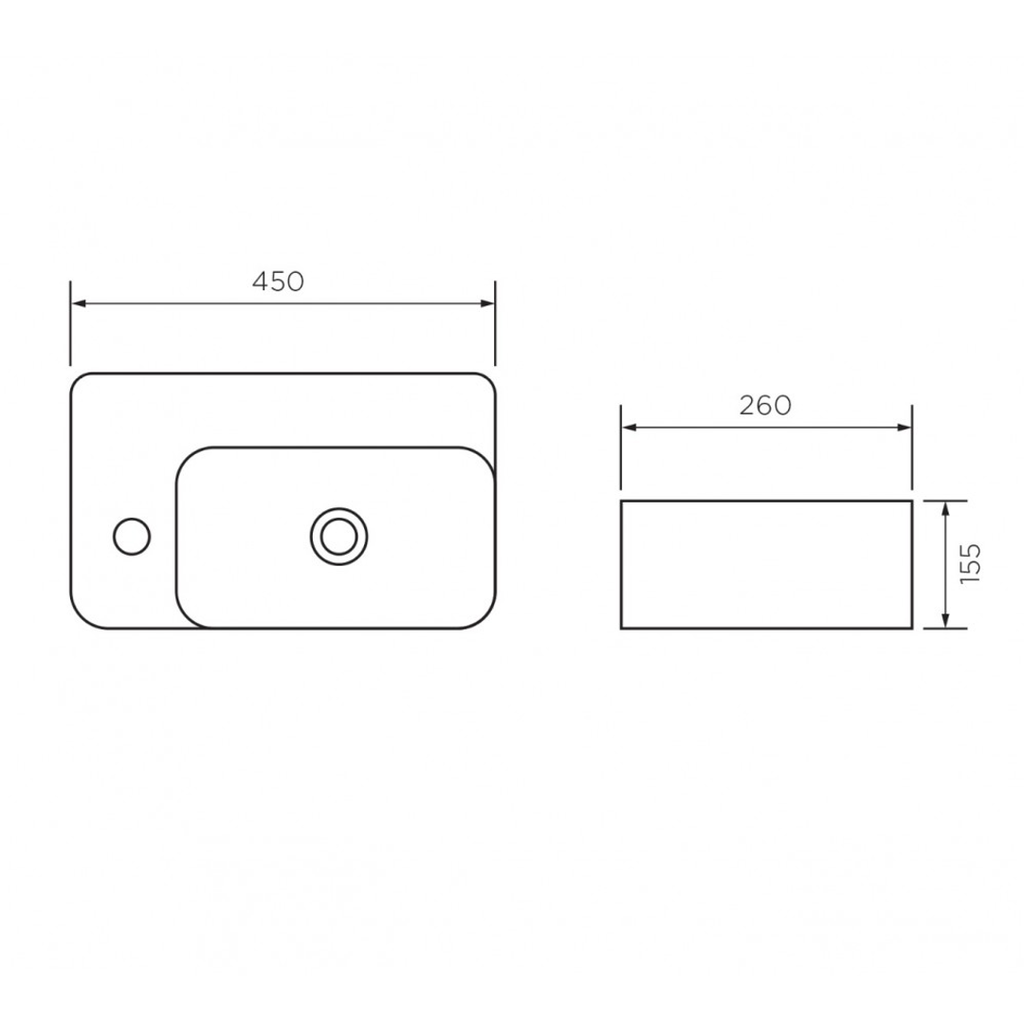 Streamline Eneo 45X26 Wall Hung Basin W.Overflow Side Shelf Right Bowl_1 Tap Hole