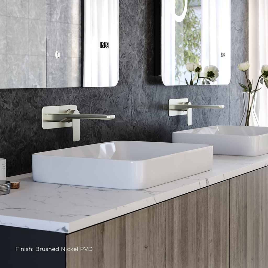 Streamline Kibo Wall Mount Basin Mixer 200Mm Spout Ext Only Brushed Nickel