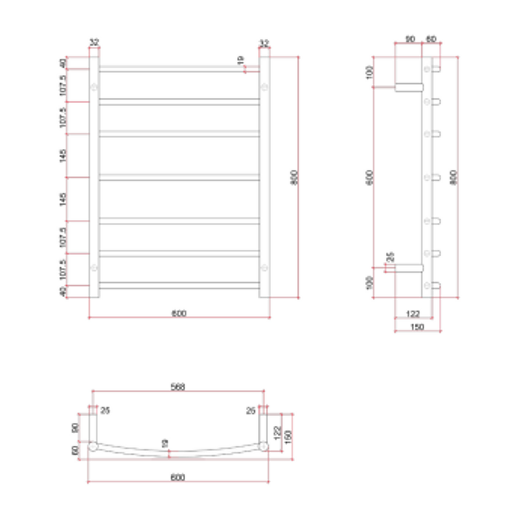 Thermorail Curved Round Polished Ladder - 600x800x150mm 80Watts 7 Bars
