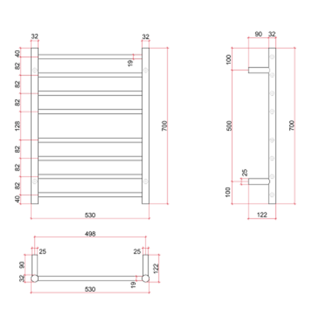 Thermorail Straight Round Stainless Ladder - 530x700x122mm 76Watts 8 Bars