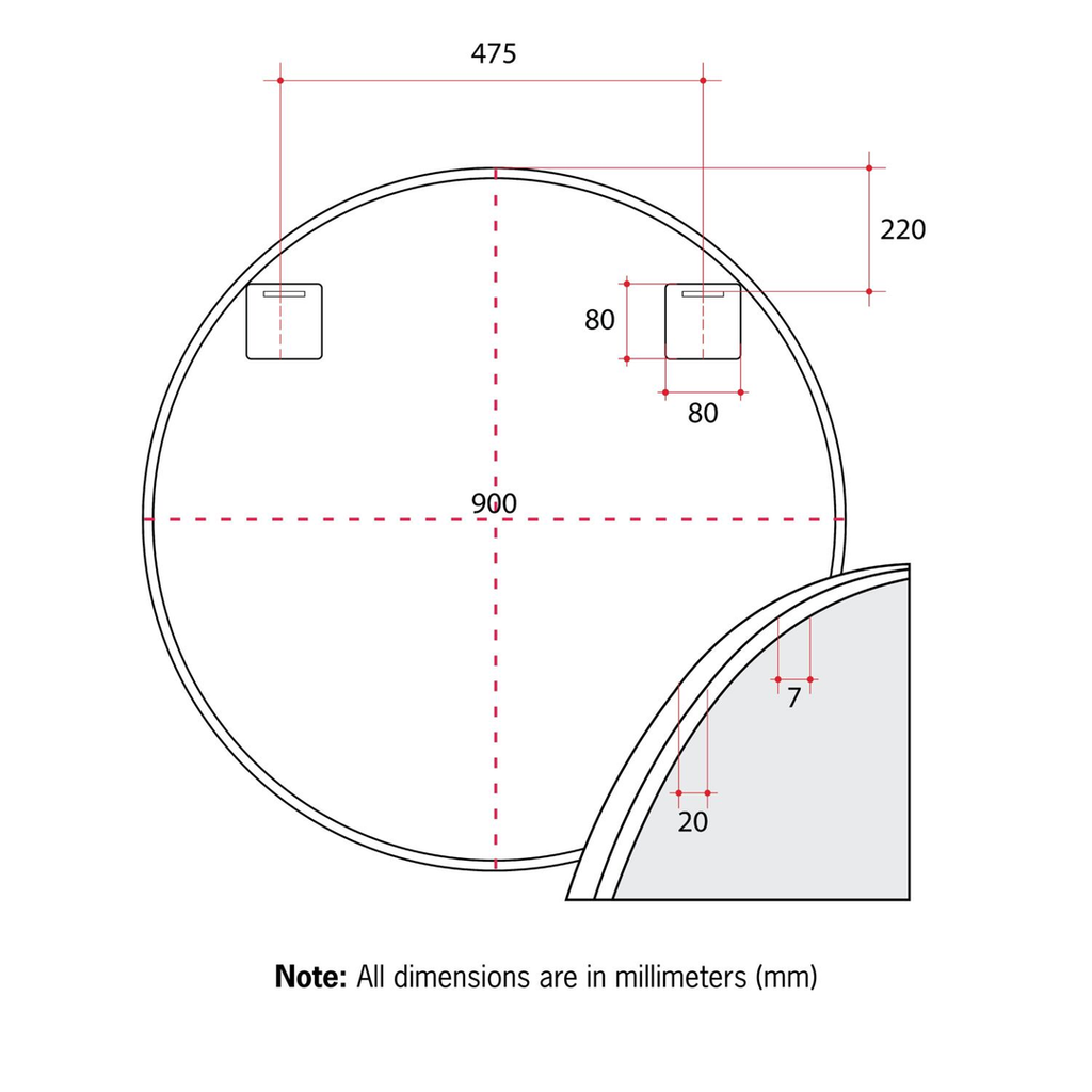 Thermogroup Georgia Round White Framed Mirror - 900Mmø - Includes Mirror Demister
