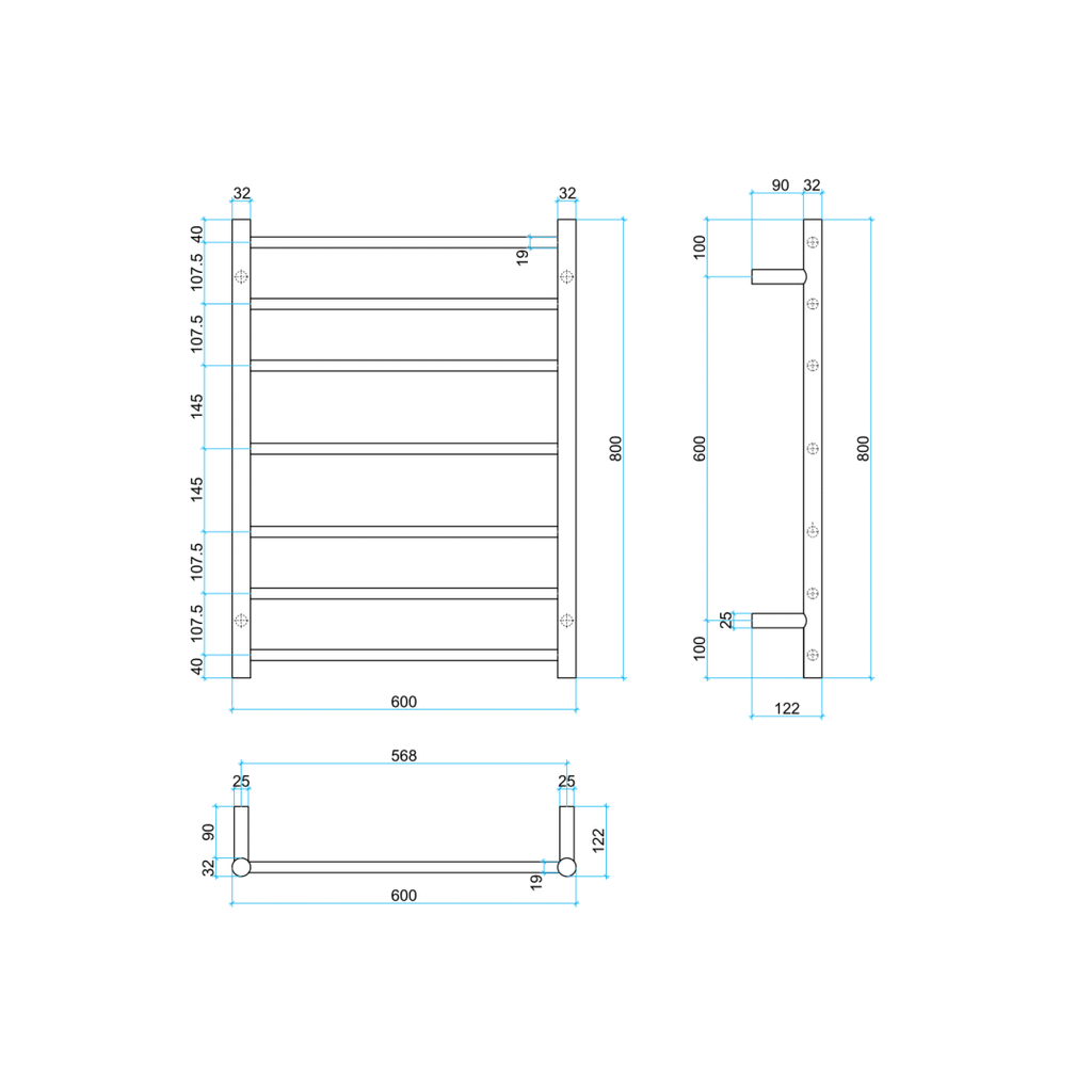 Thermogroup Thermorail Straight/Round 600X800X122Mm 80Watts 7 Bars - Brushed Nickel