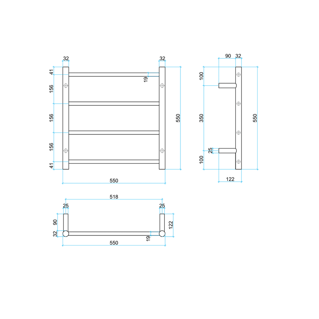 Thermorail Straight/Round 550X550X122mm 41Watts 4 Bars - Brushed Brass
