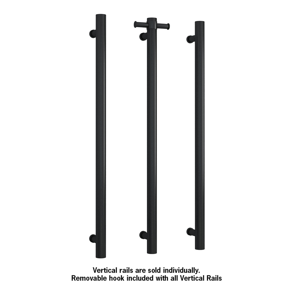 Thermorail Straight/Round Non Heated Vertical Bar 900X142X100Mm With Optional Hook Matt Black